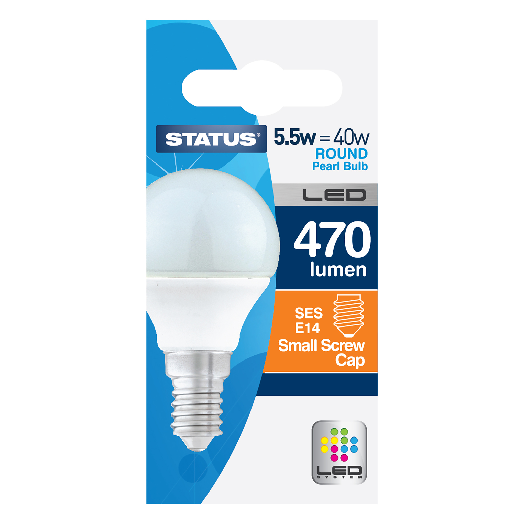 5.5W= 40W 470 lumens Round Small Screw Cap LED Light Bulb Warm White.