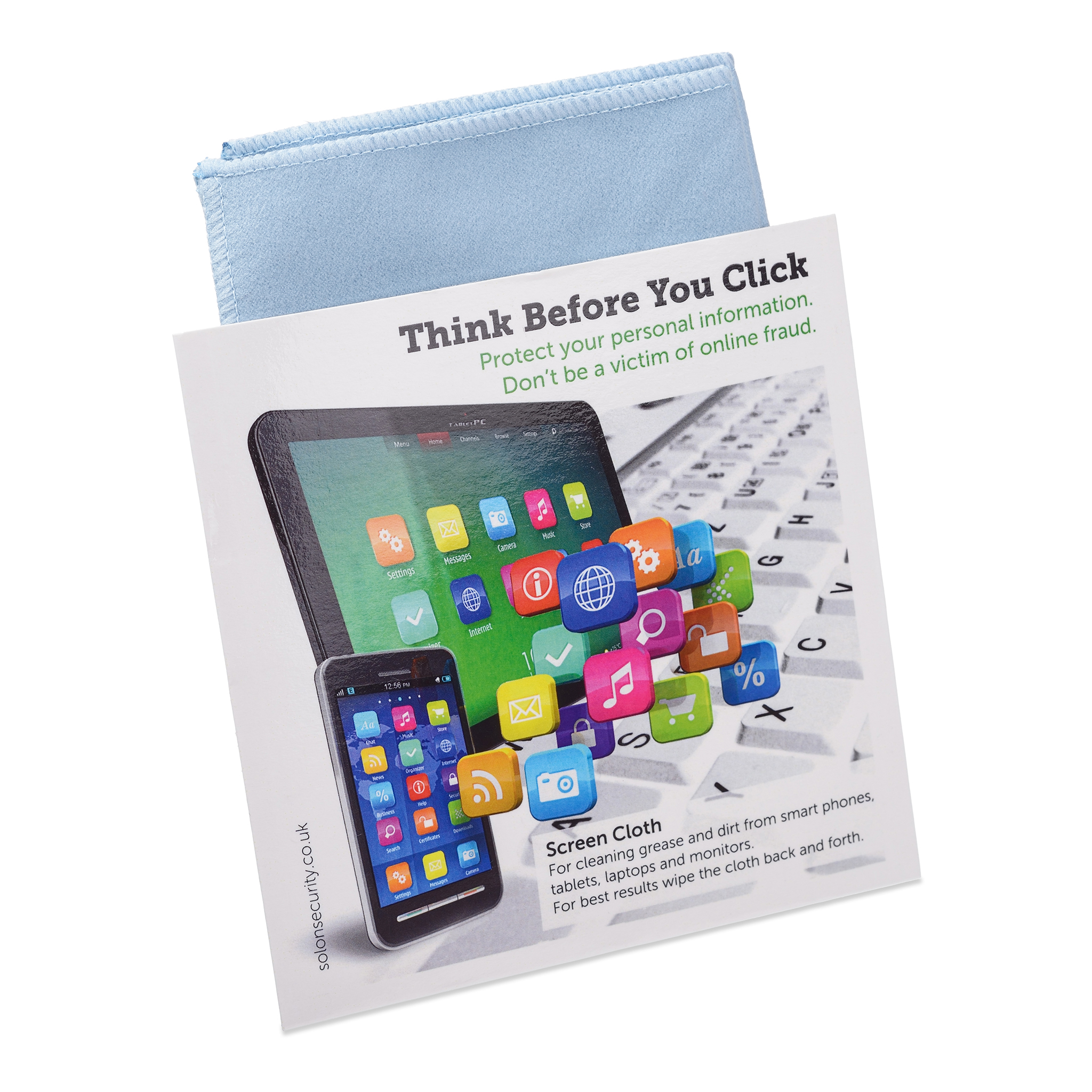 As online fraud is becoming more prevalent the Anti-Fraud Screen Cloth is a great way to ensure that your safety message has maximum impact. Suitable for use on mobile phones, laptops and tablets.