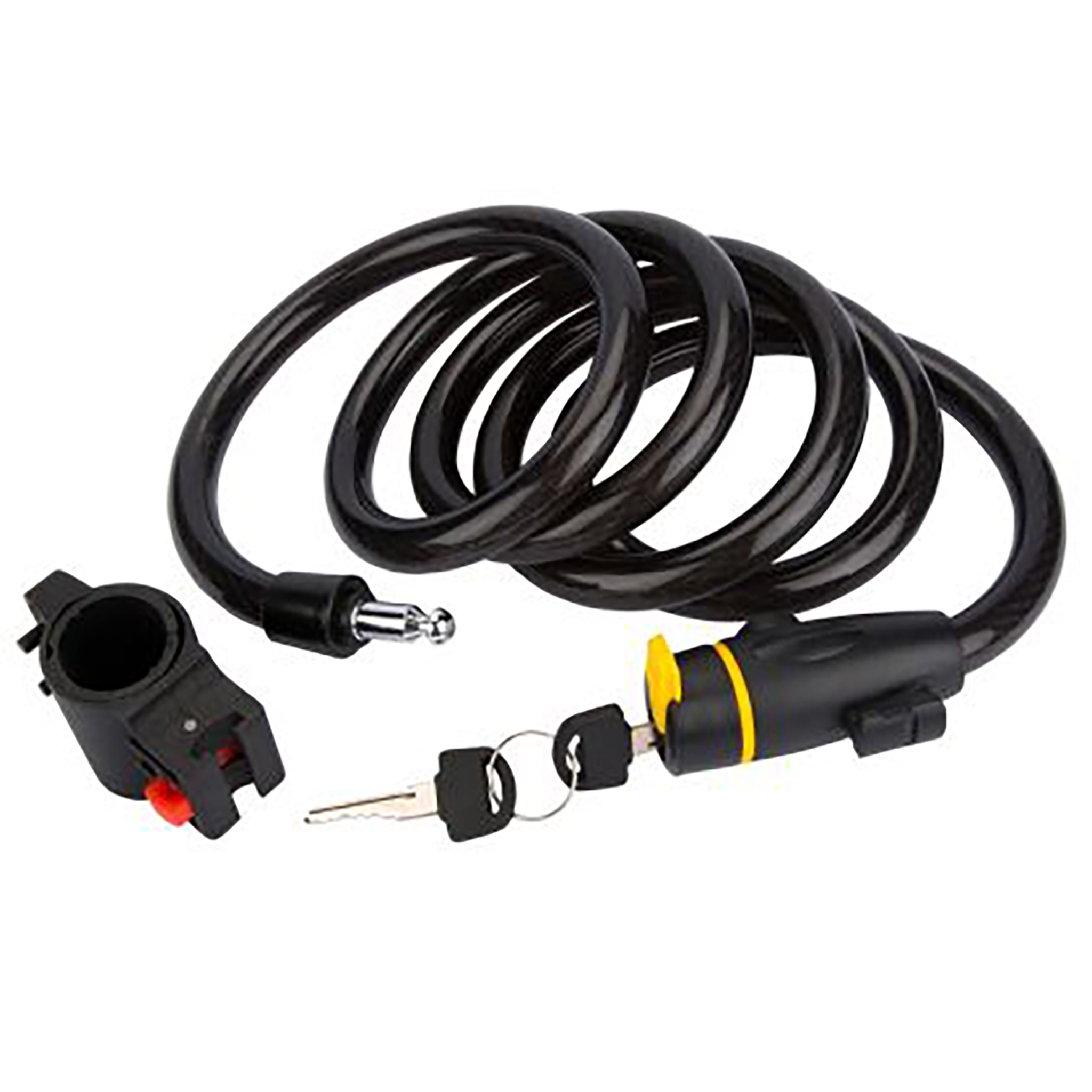 The Blue Spot Tools 15mm x 1.8m locking cable is manufactured from braided steel for increased strength and durability and also features a weather-resistant vinyl coating. The lock features a sliding cover to protect the cylinder. It comes complete with a mounting bracket and two keys. In addition to the above, it features a self-coiling design for easy storage.