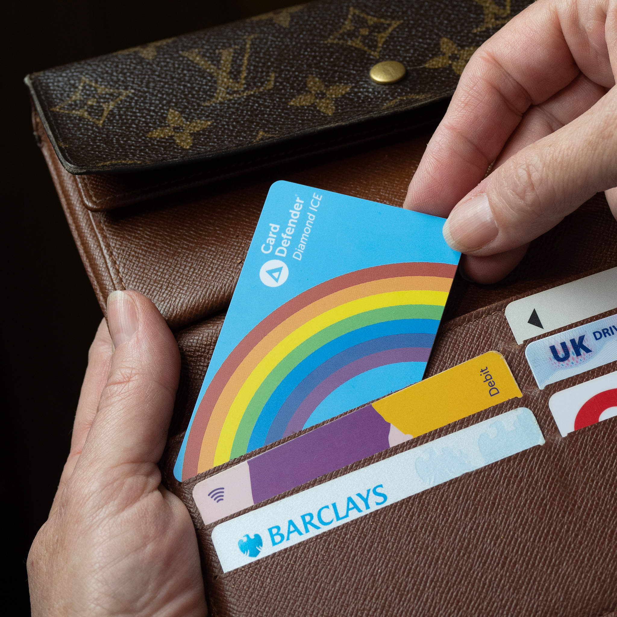 The ultimate RFID blocking solution that protects contactless cards within a 10cm radius and that also helps store vital ICE information (In Case of Emergency).