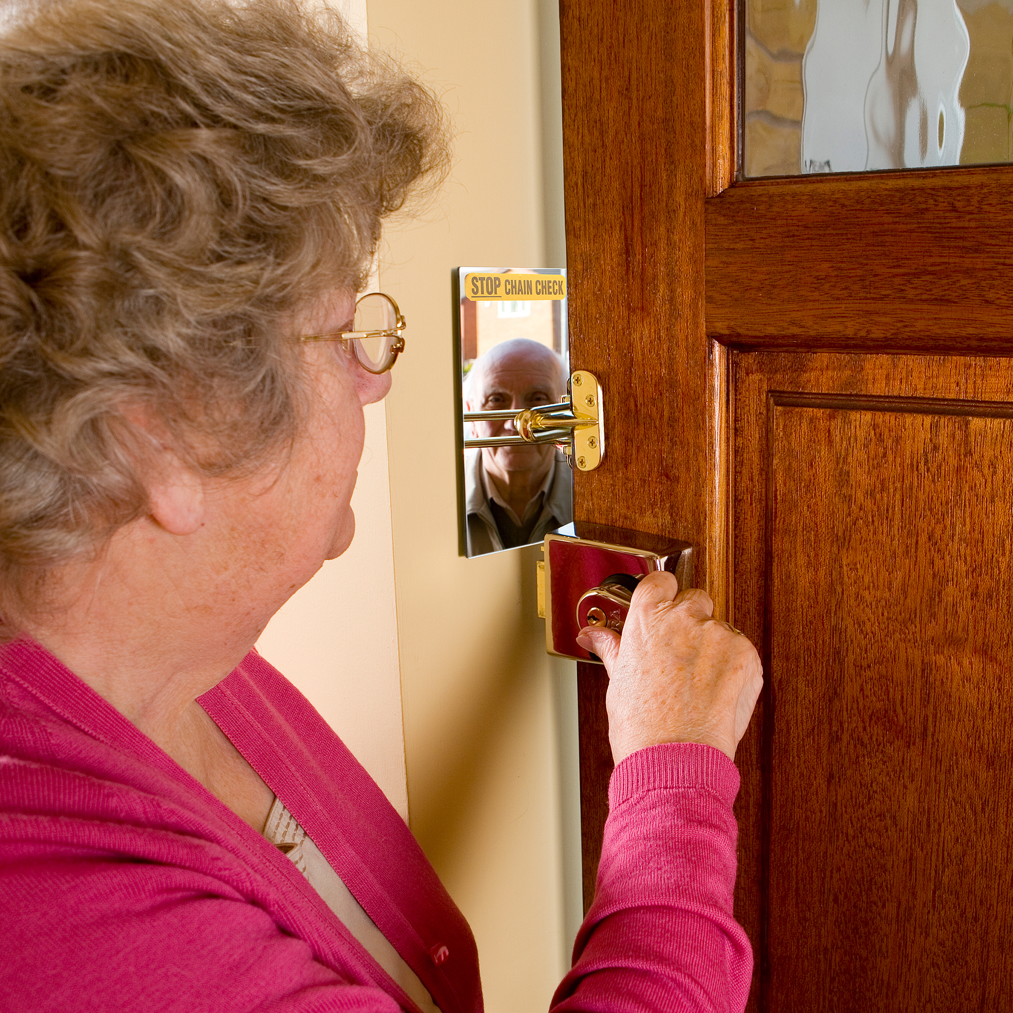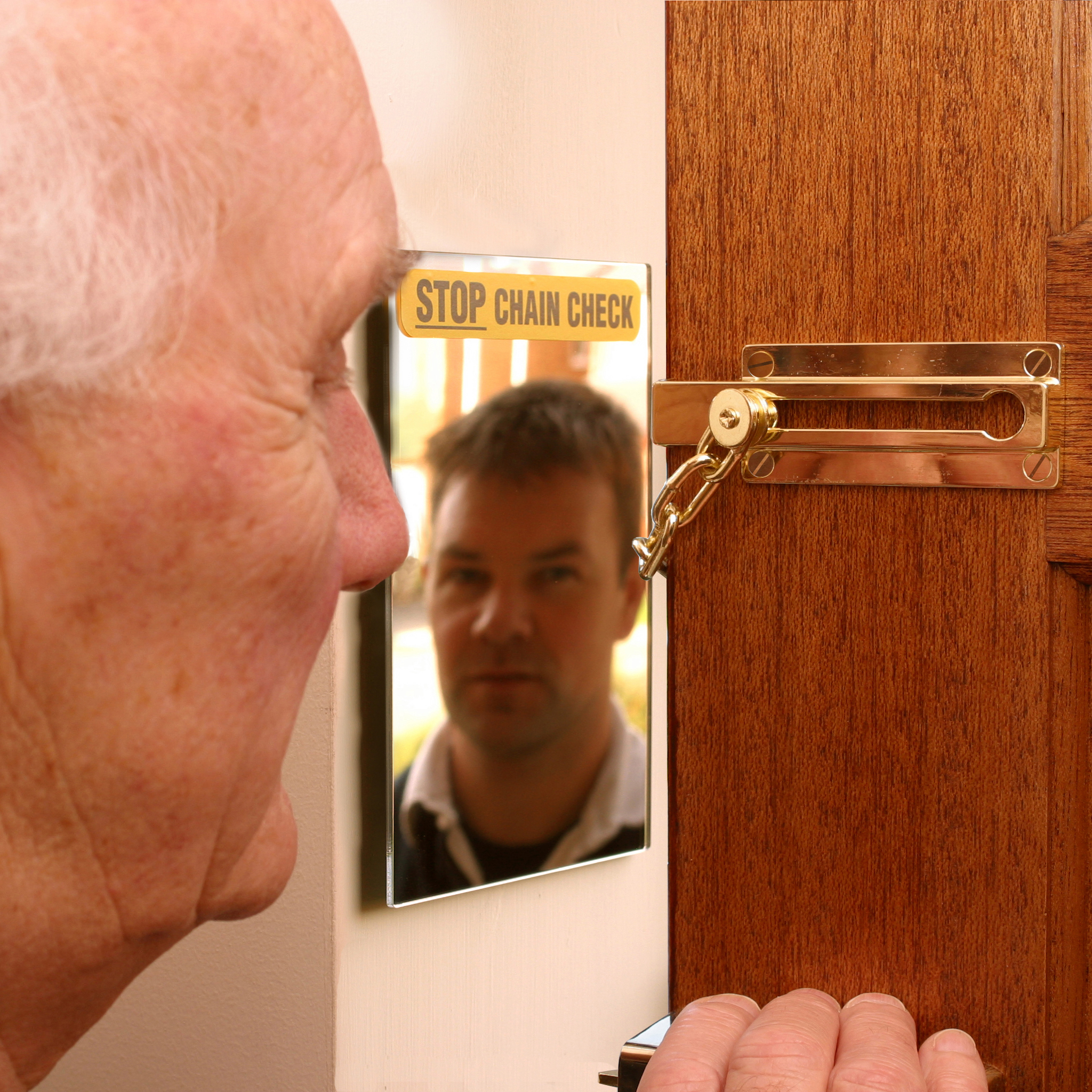 Enables positive identification of a caller whilst using a door chain or door bar restrictor. Ideal for use when the door opening is against a wall restricting the view.