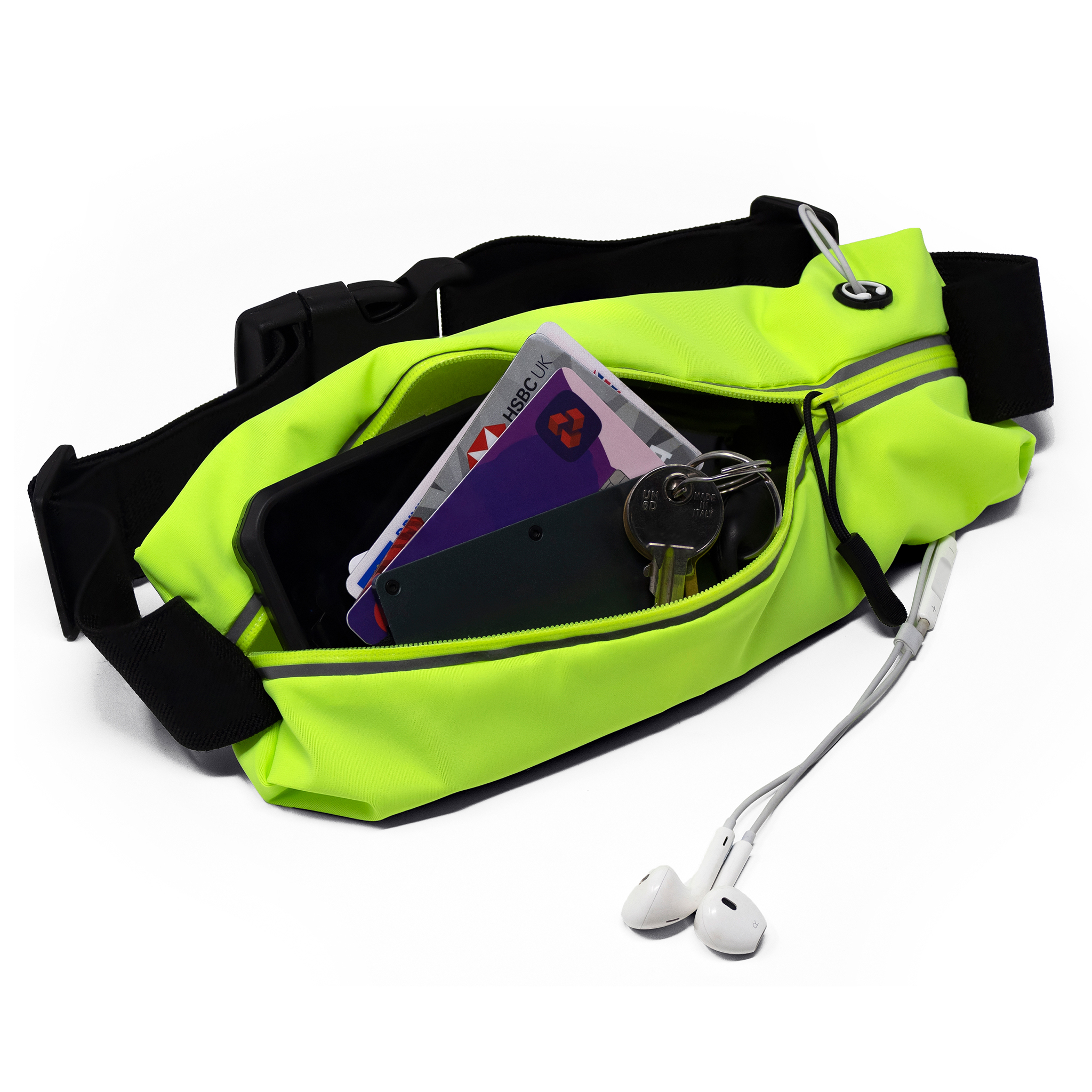 High quality zip pouch with an adjustable belt clip. Perfect for storing valuables whilst on the move via cycling, jogging or walking and ensuring you remain safe and seen at all times. Large enough for phones, purses and other regular items.