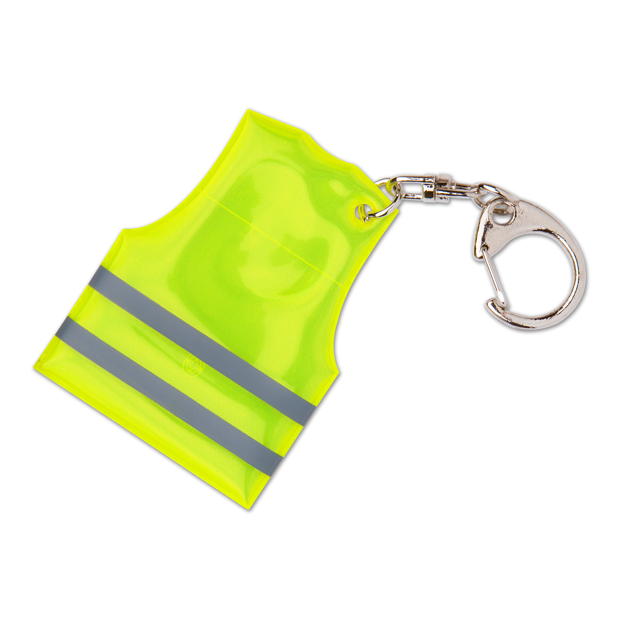 The Hi-Vis Vest Key Ring is a great, low cost giveaway item that can be branded. It has a reliable and strong g clip that can be used on to attach it to key rings, bags or zips to provide an extra reflective and hi-vis accessory. Frequently used in road safety campaigns and often handed out to young children.
