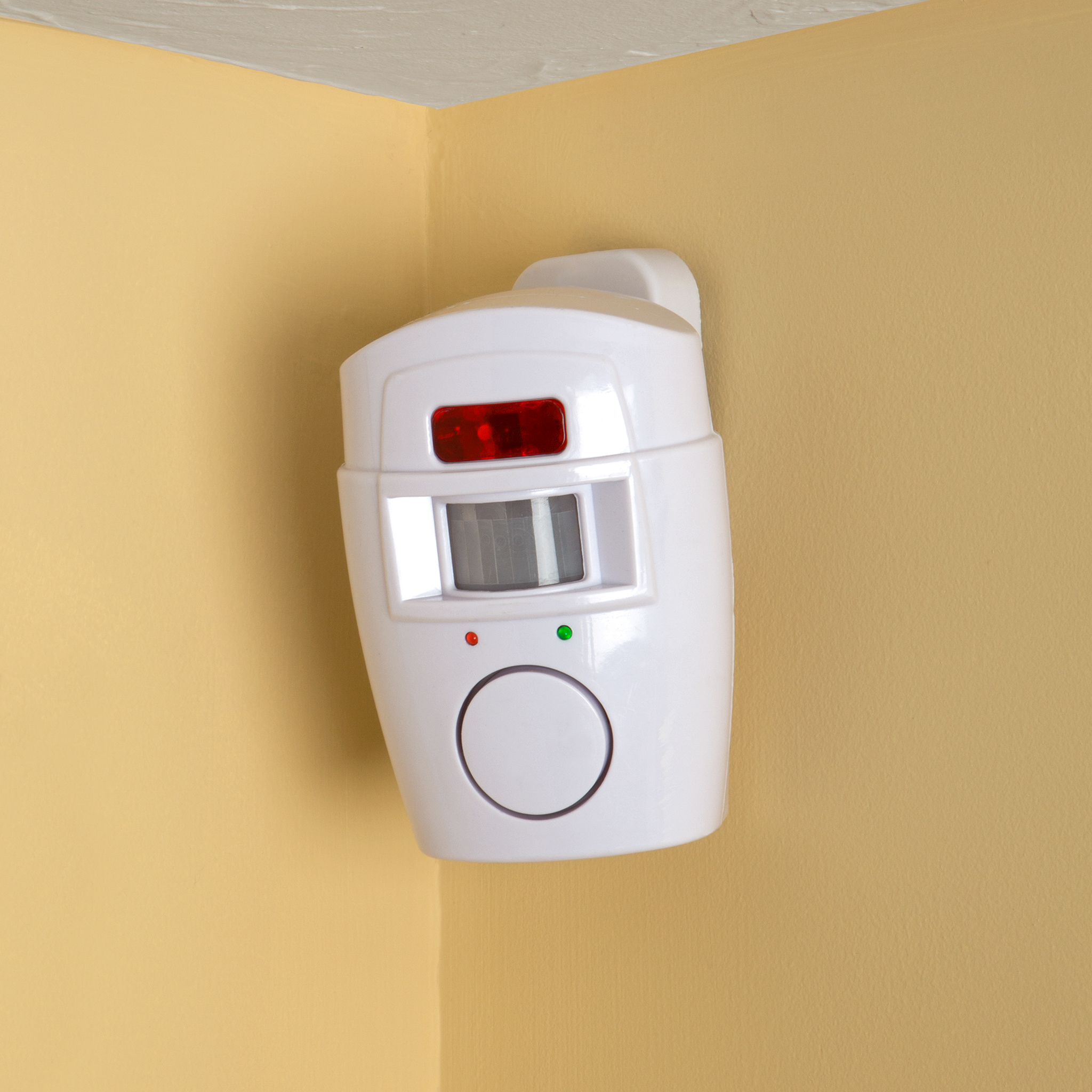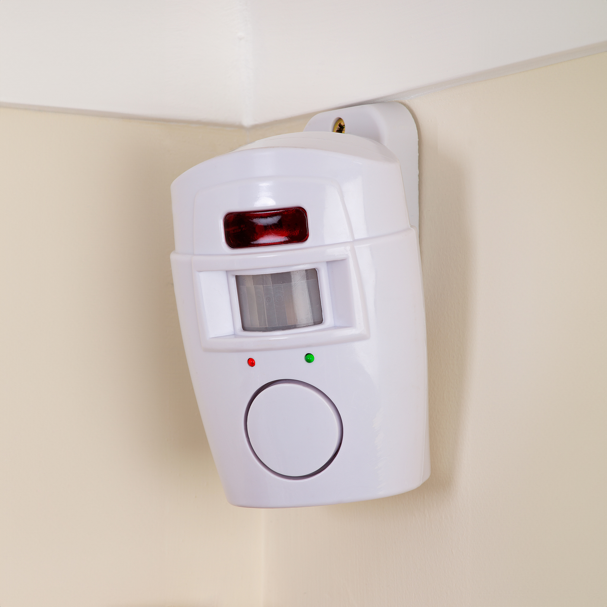 This alarm is battery operated with 2 x remote controllers (to arm and disarm the unit). The PIR sensor can detect movement up to 8m away and will sound a 105dBs siren.