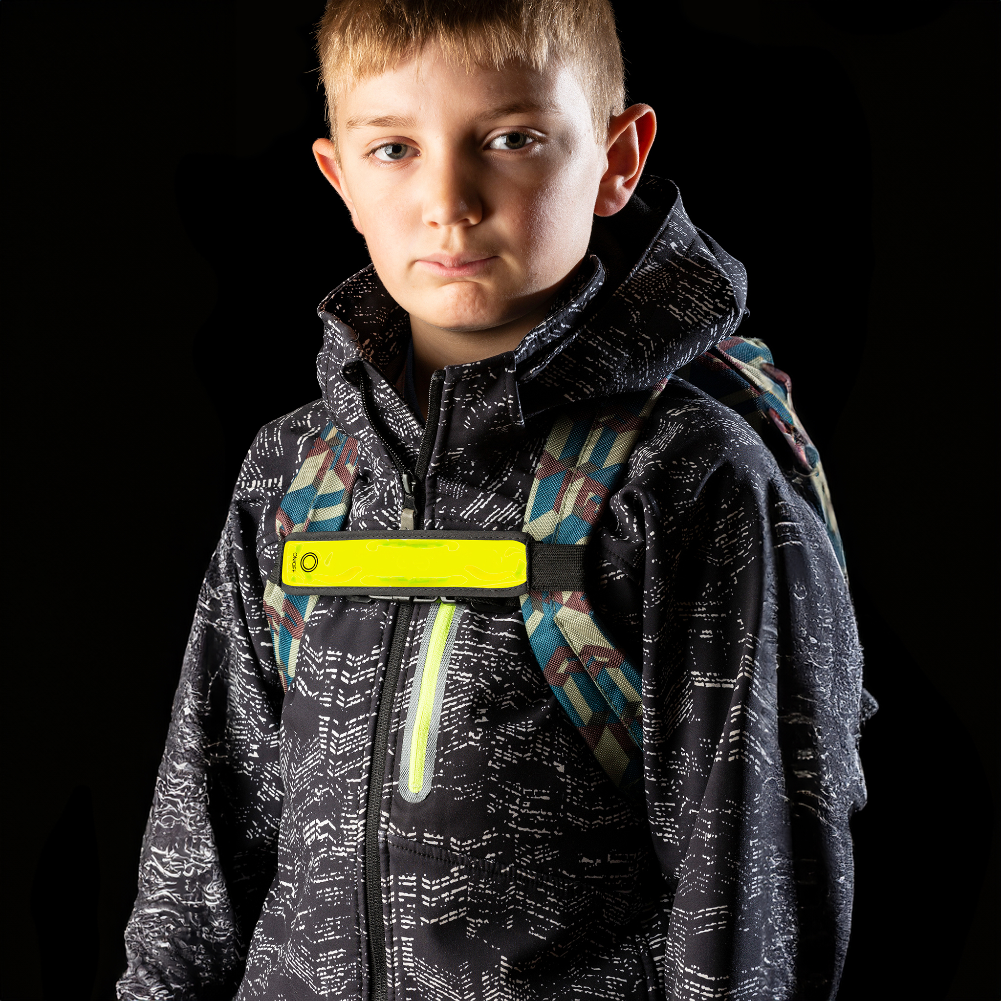 The strap can be set to On, Flashing or Off by simply pressing the contained button.