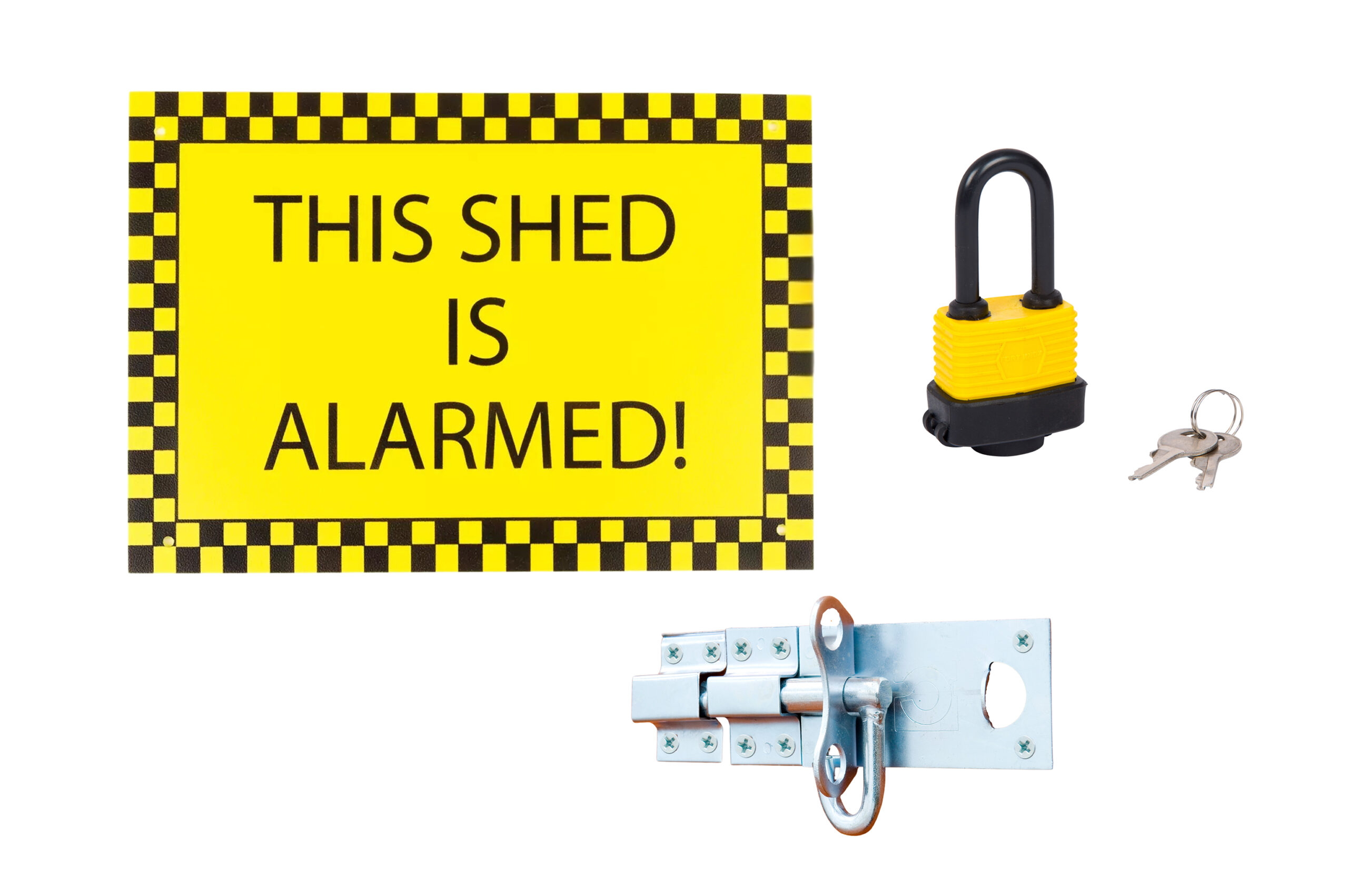 This Shed is Alarmed Sign 210mmx150mm – Lets others know your shed is protected.